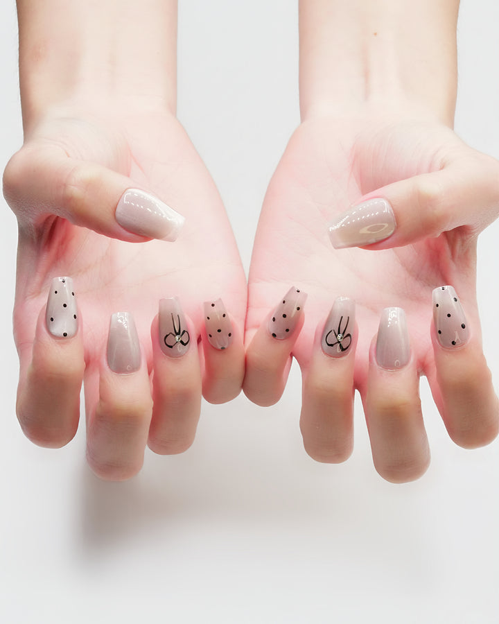 THESE ARE READY-TO-WEAR NAILS DESIGNED WITH RAISED TEXTURES AND SCULPTED ACCENTS THAT YOU CAN APPLY AT HOME. WITH PROPER PREP, A FULL SET CAN BE APPLIED IN ABOUT 10–15 MINUTES. THEY CAN STAY ON FOR UP TO THREE TO FOUR WEEKS WHEN USING NAIL GLUE, OR FOR SEVERAL DAYS WITH ADHESIVE TABS—PERFECT FOR SWITCHING STYLES WHENEVER YOU FEEL LIKE IT.