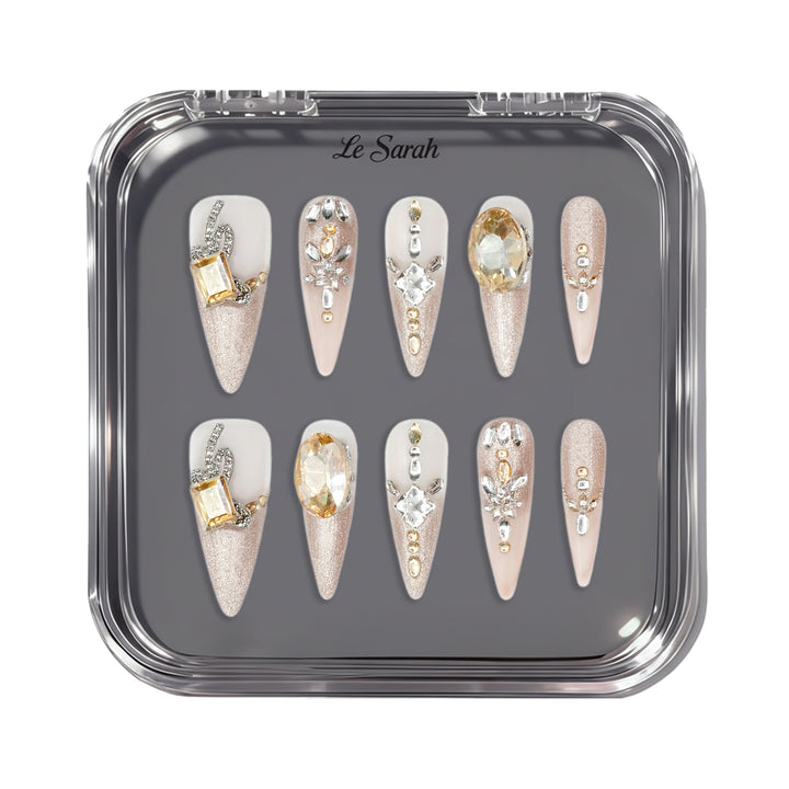 Le Sarah's Champagne Wishes from the Fairytale series blends luxurious champagne tones, dazzling gem accents, and ornate details, creating a glamorous, fairytale-inspired look that sparkles like a toast to your dreams.