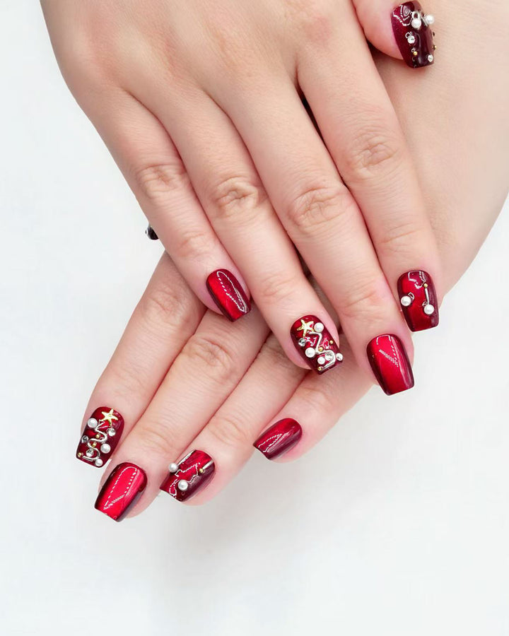 Le Sarah's Crimson Noël from the Christmas series showcases vibrant crimson hues, festive pearl and star details, creating a lively, classic look that radiates the joyful spirit of Christmas.
