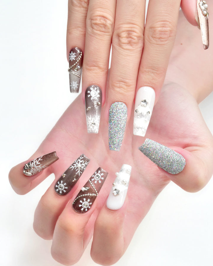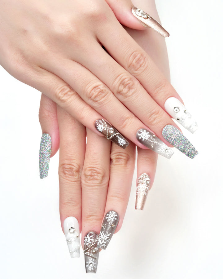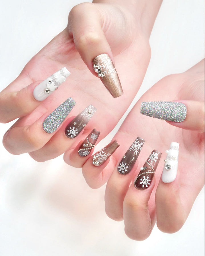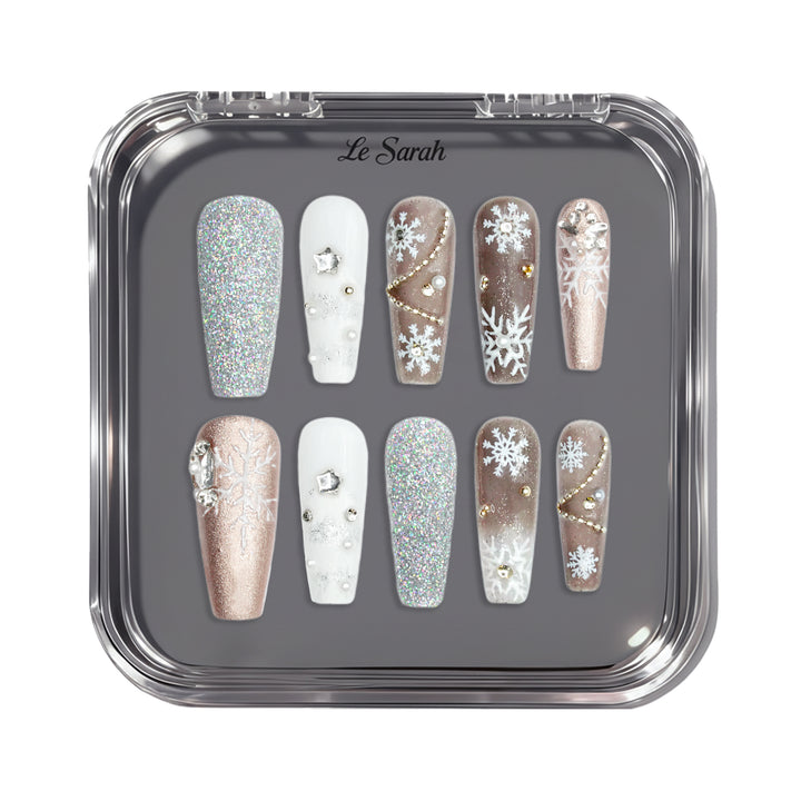 Le Sarah's Frosted Christmas from the Christmas series features icy tones, sparkling snowflake motifs, and glittering details, creating a wintry, enchanting look that captures the frosty charm of a Christmas wonderland.