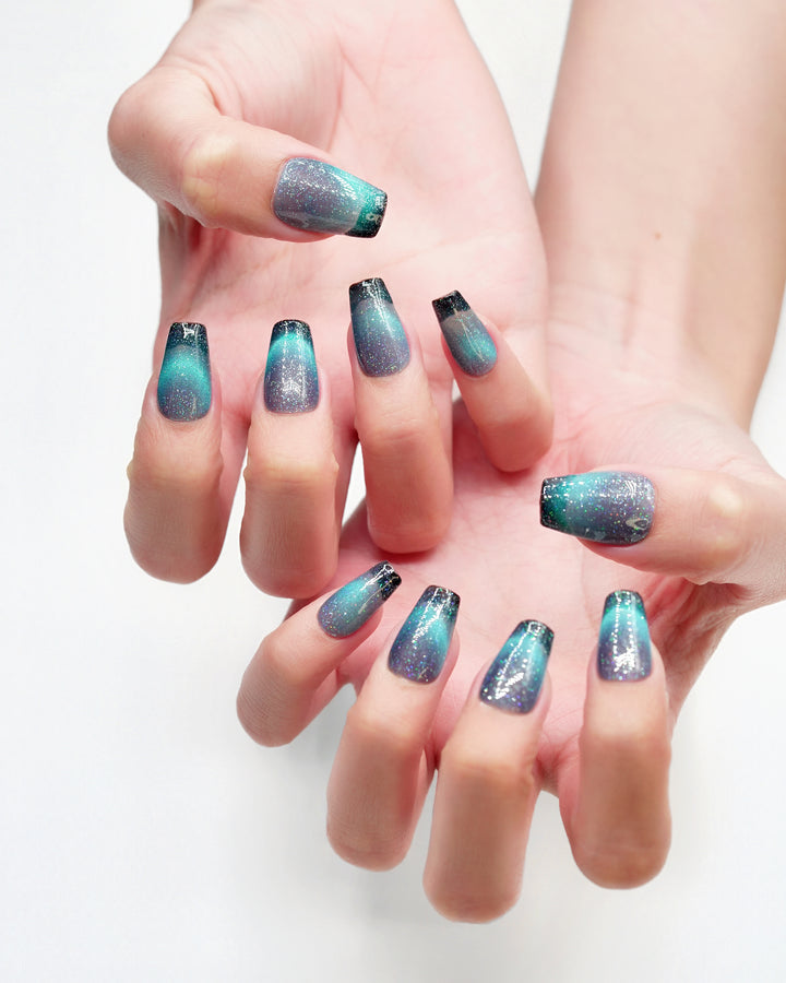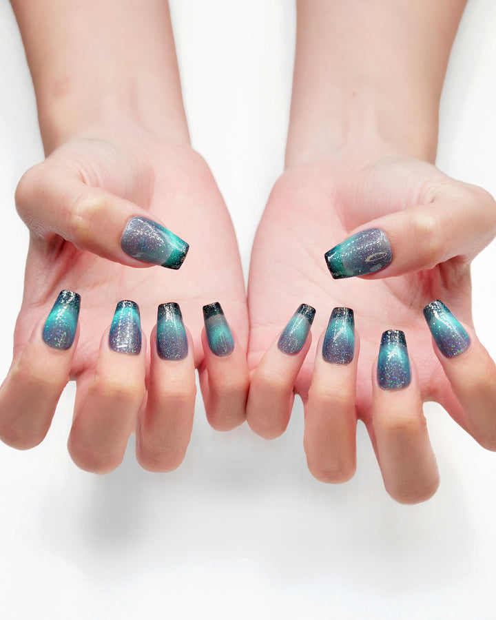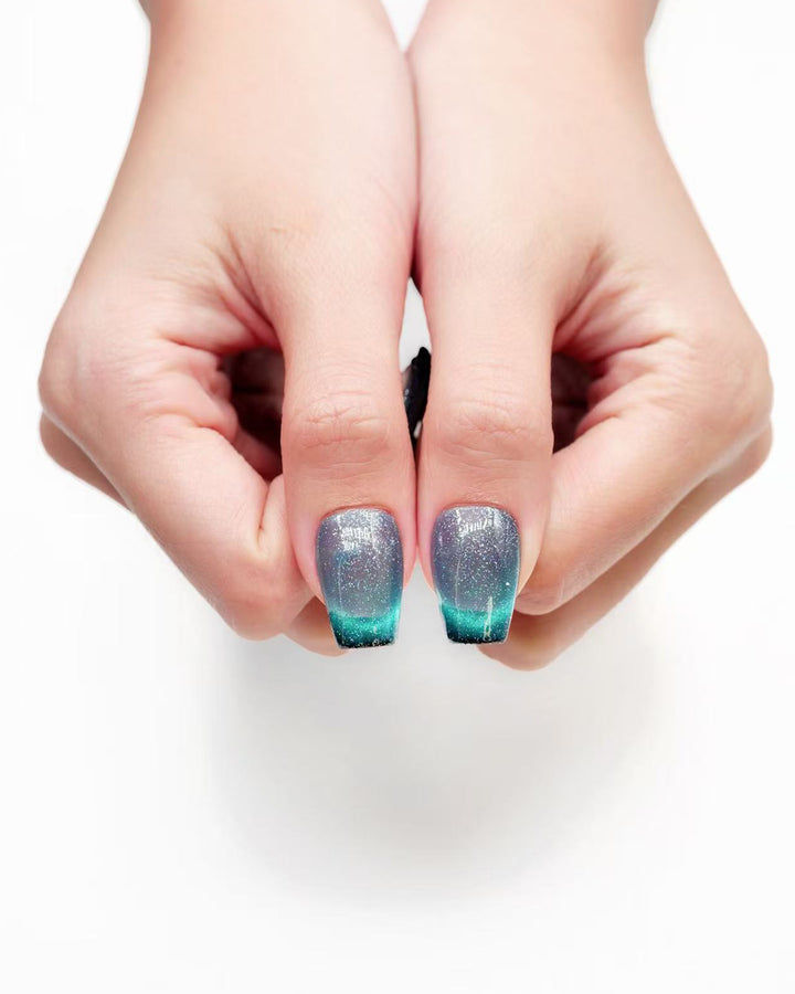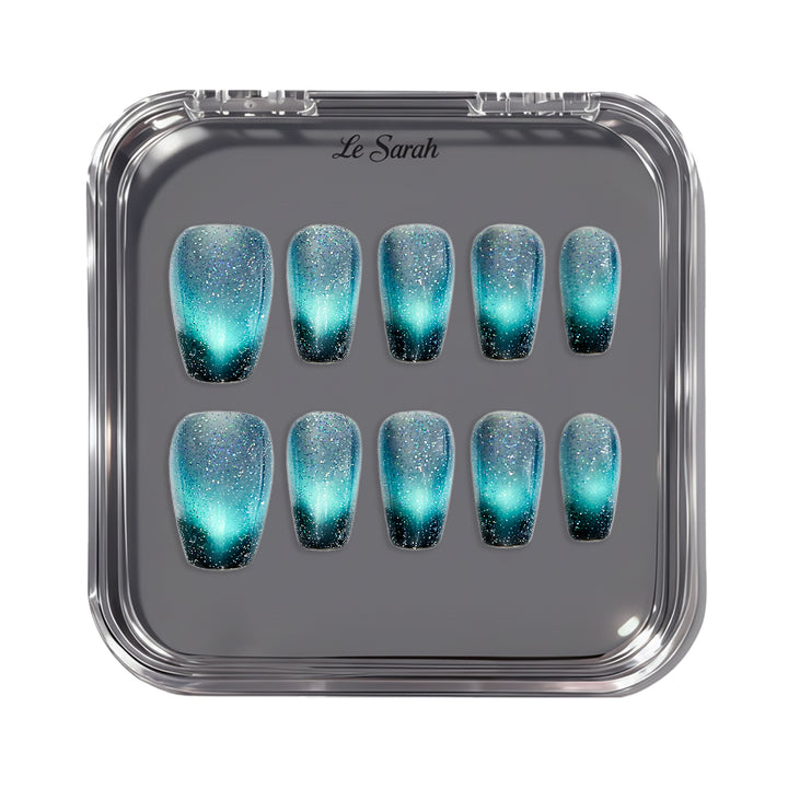 Le Sarah's Galaxy Cat-Eye from the Classic series features a mesmerizing gradient of smoky grey and teal, with cat-eye shimmer that mimics the depth of a galaxy, creating a futuristic, sophisticated look.