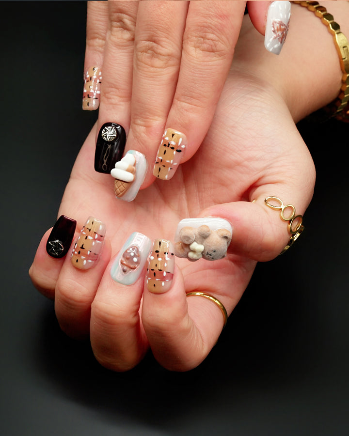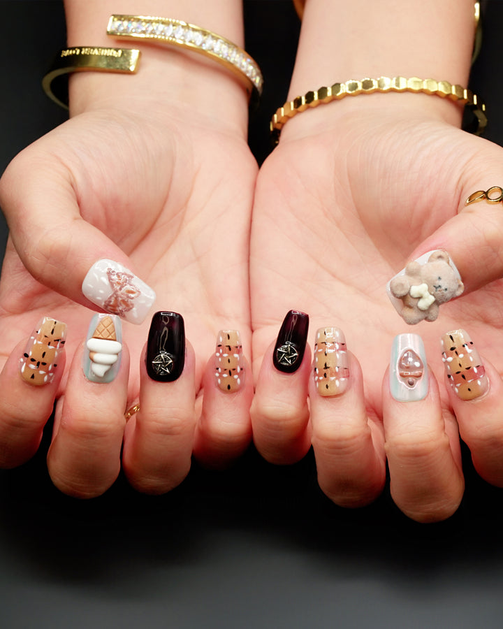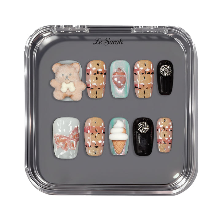Le Sarah's Ice Cream Bear from the Kawaii series features adorable teddy bears, creamy ice creams, and cute patterned designs, creating a sweet, playful look that’s like a whimsical treat for your nails.