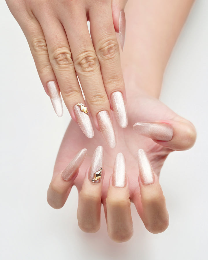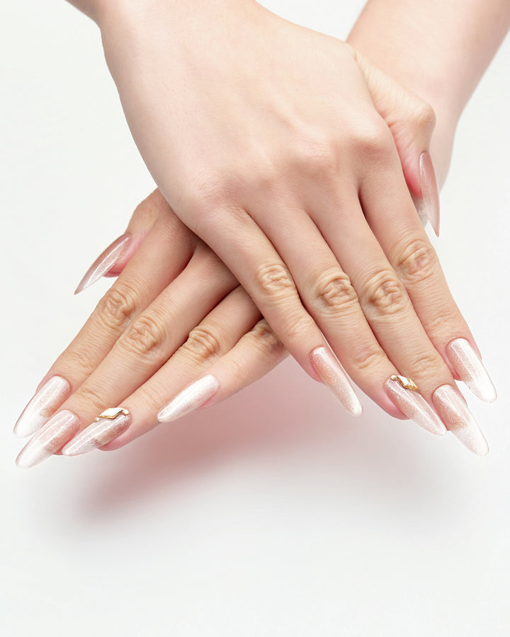 Le Sarah's Iridescent Cat Eye embodies the enchanting allure of modern sophistication. Part of our Classic Collection, this design features a shimmering iridescent cat - eye effect with delicate, eye - catching accents. Evoking a sense of dreamy elegance and contemporary charm, these nails add a mesmerizing, refined touch to any look, whether for daily grace or special moments.