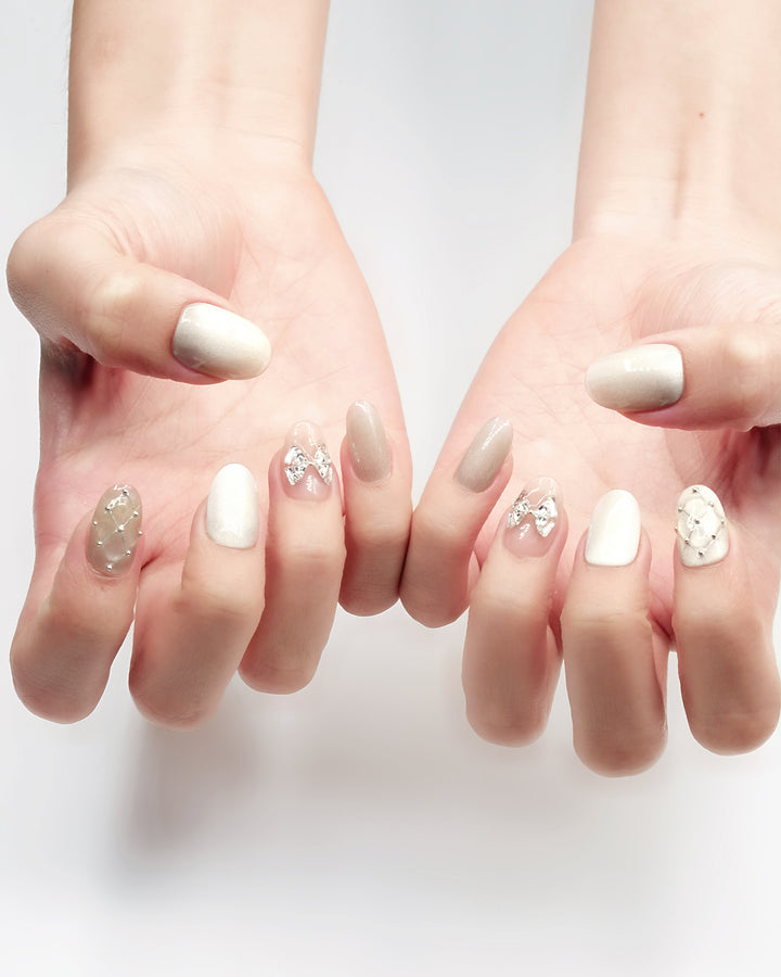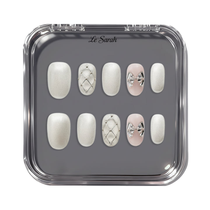 Le Sarah's Lilac Whisper redefines workplace elegance for the modern woman. Part of our Work Chic Collection, this design features soft, sophisticated lilac and neutral tones, accented by delicate crystal bow details and subtle, refined embellishments. Evoking the grace of a quiet confidence that shines in professional settings, these nails blend understated charm with polished style—perfect for elevating your workday look while maintaining timeless sophistication.