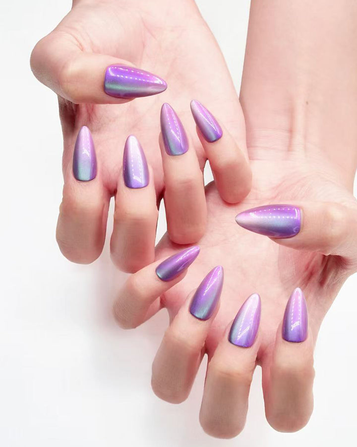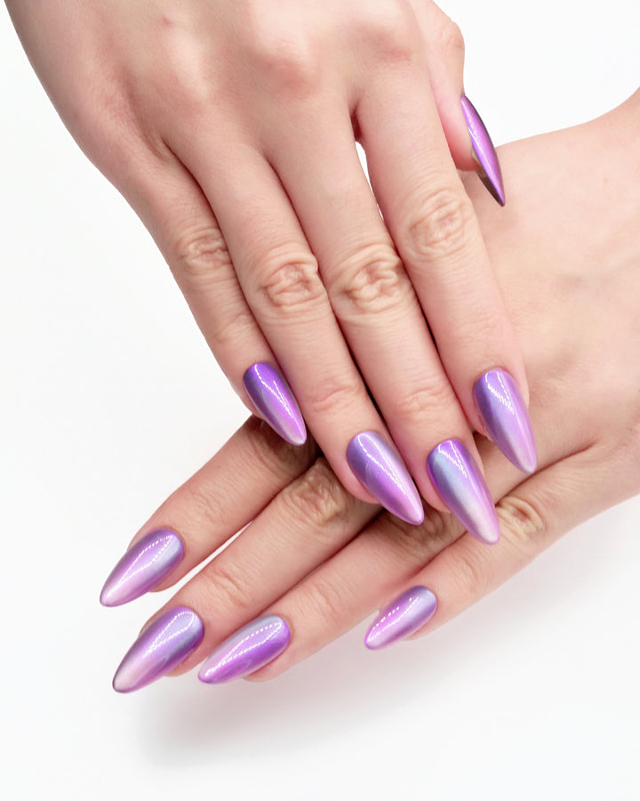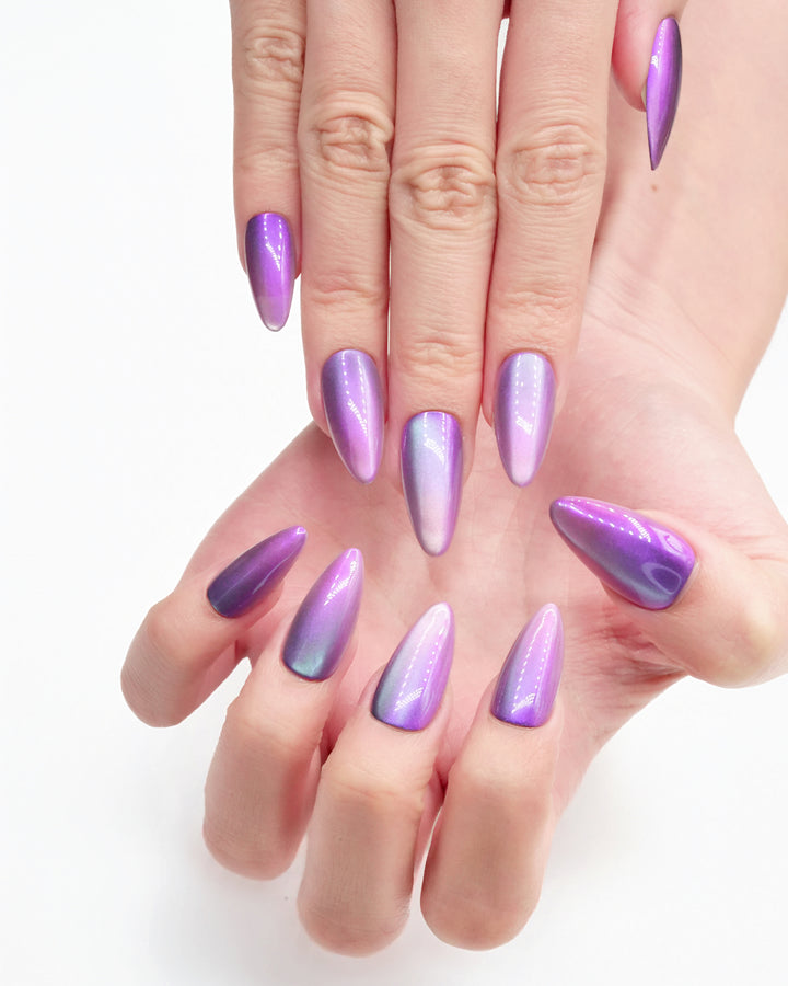 Le Sarah's Luminous Cat - Eye embodies the captivating charm of modern glamour. Part of our Classic Collection, this design features a mesmerizing cat - eye effect with shimmering, iridescent hues that shift beautifully in the light. Evoking a sense of enchanting allure and sophisticated radiance, these nails add a dazzling, head - turning touch to any look, whether for a night out or everyday elegance.
