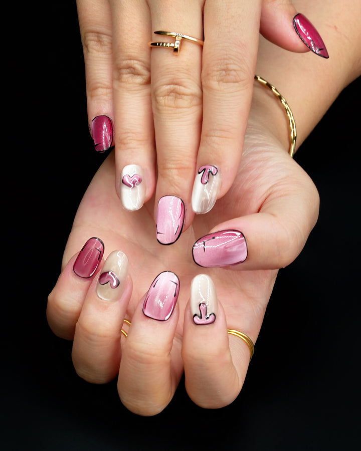 THESE ARE READY-TO-WEAR NAILS DESIGNED WITH RAISED TEXTURES AND SCULPTED ACCENTS THAT YOU CAN APPLY AT HOME. WITH PROPER PREP, A FULL SET CAN BE APPLIED IN ABOUT 10–15 MINUTES. THEY CAN STAY ON FOR UP TO THREE TO FOUR WEEKS WHEN USING NAIL GLUE, OR FOR SEVERAL DAYS WITH ADHESIVE TABS—PERFECT FOR SWITCHING STYLES WHENEVER YOU FEEL LIKE IT.