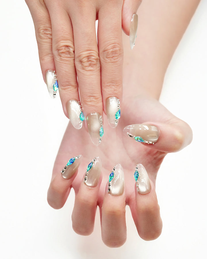THESE ARE READY-TO-WEAR NAILS DESIGNED WITH RAISED TEXTURES AND SCULPTED ACCENTS THAT YOU CAN APPLY AT HOME. WITH PROPER PREP, A FULL SET CAN BE APPLIED IN ABOUT 10–15 MINUTES. THEY CAN STAY ON FOR UP TO THREE TO FOUR WEEKS WHEN USING NAIL GLUE, OR FOR SEVERAL DAYS WITH ADHESIVE TABS—PERFECT FOR SWITCHING STYLES WHENEVER YOU FEEL LIKE IT.
