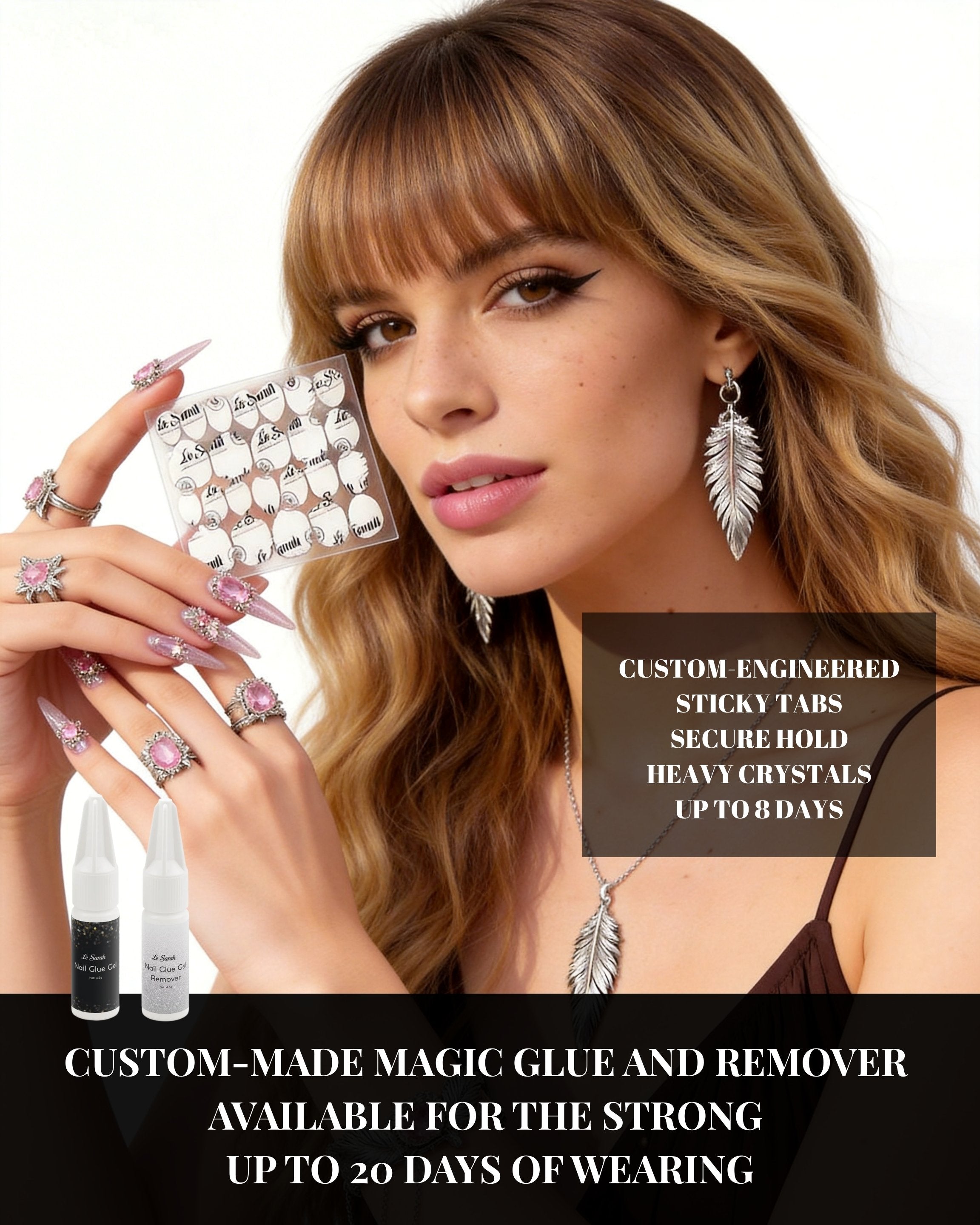 SWITCH UP YOUR DESIGNS ANYTIME WITH EASY AND GENTLE REMOVAL, AND NO DAMAGE TO YOUR NATURAL NAILS. WITH PROPER CARE, LE SARAH SETS ARE REUSABLE FOR MULTIPLE WEARS.