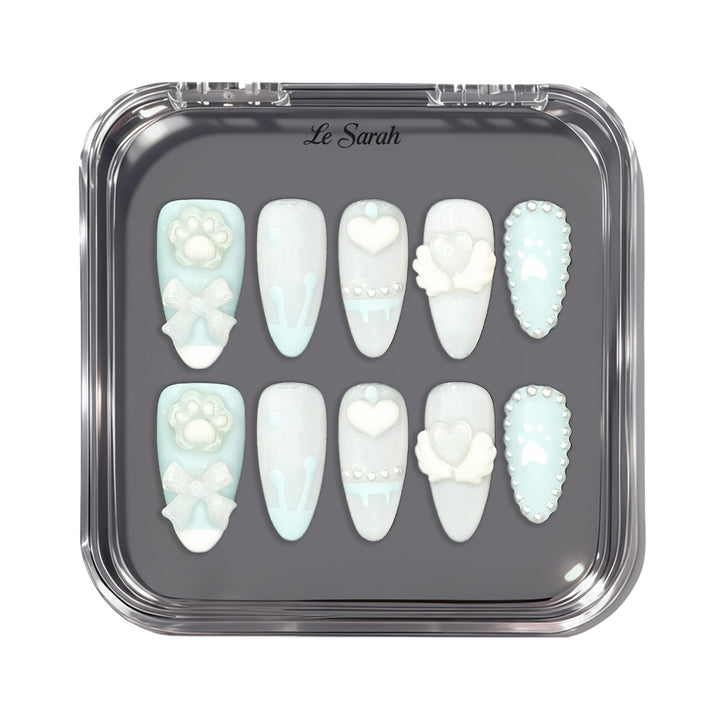 Le Sarah's Milky Blue Bear from the Kawaii series showcases soft milky blue hues, adorable bear paw and bow details, creating a gentle, whimsical look that’s as cute as a fluffy blue bear.