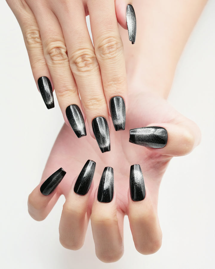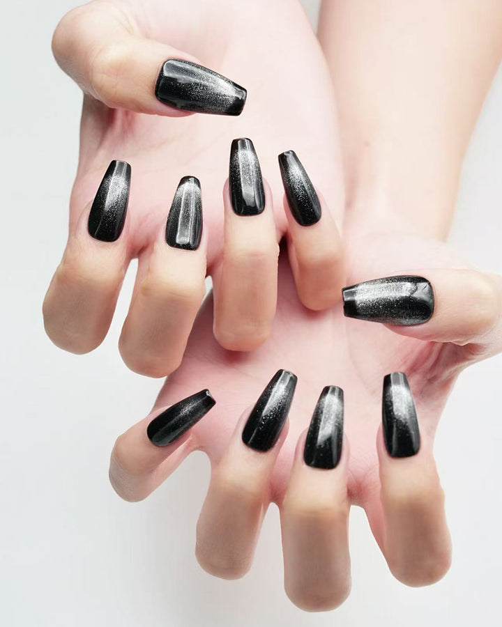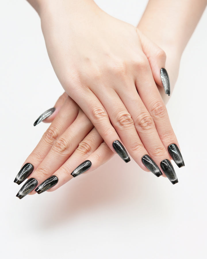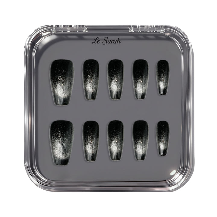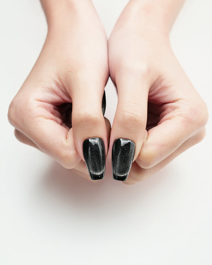 Le Sarah's Mystic Cat - Eye embodies the alluring mystery of twilight elegance. Part of our Classic Collection, this design features a deep, shimmering cat - eye effect with a dark, mesmerizing hue that captures and reflects light in an enchanting way. Evoking a sense of sophisticated intrigue and nocturnal charm, these nails add a captivating, spellbinding touch to any look, perfect for elevating both evening styles and everyday sophistication.