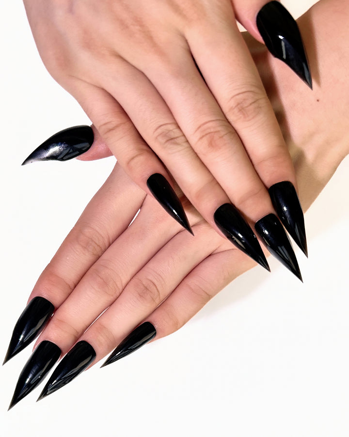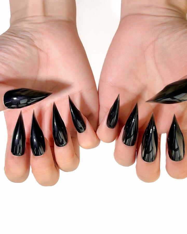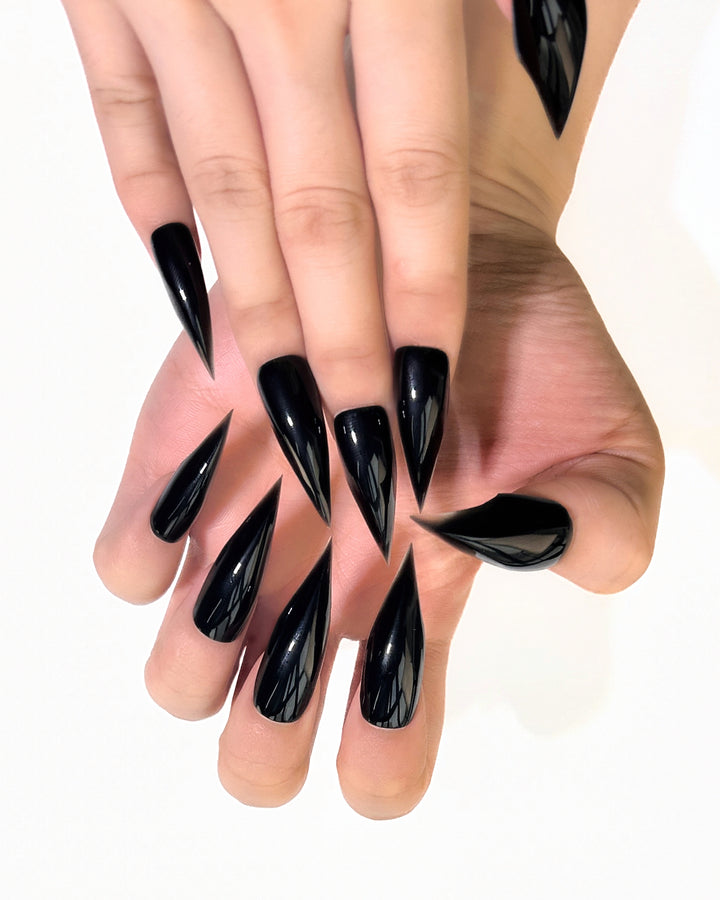 Le Sarah's Onyx Claws from the SCI-FI series features sleek, jet-black talon shapes, creating a bold, futuristic look that’s edgy and avant-garde.