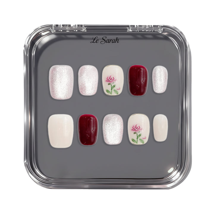 LE SARAH PRESS-ON NAILS ARE CREATED IN SMALL BATCHES USING PROFESSIONAL-GRADE SOFT GEL, LAYERED BY HAND TO ACHIEVE RICH COLOR DEPTH AND A NATURAL CONTOUR. EACH SET IS SHAPED AND FINISHED BY OUR NAIL ARTISTS TO GIVE YOU A POLISHED, SALON-LIKE LOOK THAT LASTS, WITHOUT THE HARSH CHEMICALS OR LONG APPOINTMENT TIMES.