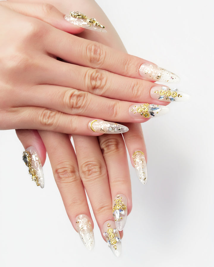 THESE ARE READY-TO-WEAR NAILS DESIGNED WITH RAISED TEXTURES AND SCULPTED ACCENTS THAT YOU CAN APPLY AT HOME. WITH PROPER PREP, A FULL SET CAN BE APPLIED IN ABOUT 10–15 MINUTES. THEY CAN STAY ON FOR UP TO THREE TO FOUR WEEKS WHEN USING NAIL GLUE, OR FOR SEVERAL DAYS WITH ADHESIVE TABS—PERFECT FOR SWITCHING STYLES WHENEVER YOU FEEL LIKE IT.
