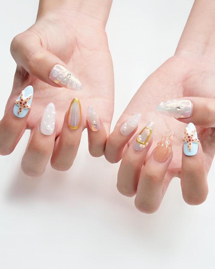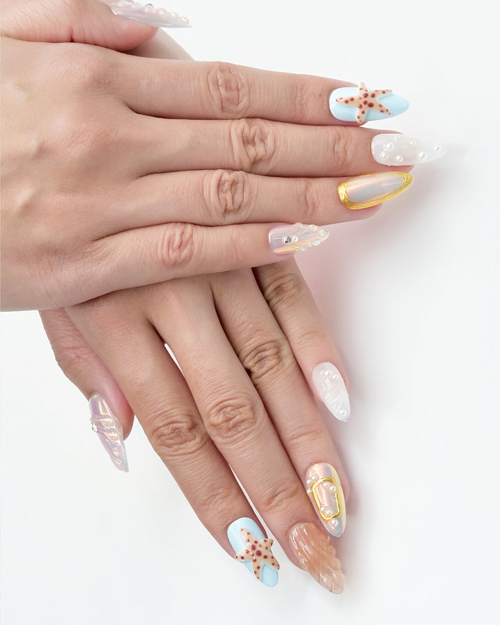 Le Sarah's Summer Isle embodies the vibrant charm of a tropical island getaway. Part of our Natural Collection, this design features seaside-inspired hues, whimsical starfish motifs, and delicate seashell accents. Evoking the warmth of sunny beaches and the allure of ocean treasures, these nails add a breezy, carefree touch to your look.